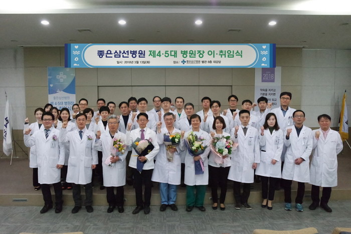 이날 이·취임식에서는 임직원 200여명이 참석하였으며, 좋은삼선병원 4대 송철수 병원장이 5대 이용성 병원장에게 원기를 건넸다.