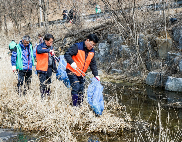13일 경기 광주시 공무원들과 지역주민, 민간단체 회원, 군부대 등 1200여명이 참여한 가운데 '새봄맞이 일제대청소' 행사의 일환으로 참가자들이 곤지암읍 만석천 주변을 청소하고 있다. (사진제공=광주시청)