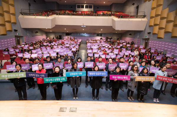 은평구가 최근 은평문화예술회관 공연장에서 주민 700명과 함께하는 ‘3.8 세계여성의 날 기념식’을 개최했다. 이날 기념식은 성평등한 은평을 위한 308명 여성의 목소리 듣기, 연극공연(세여자) 등으로 진행됐다. (사진제공=은평구청)