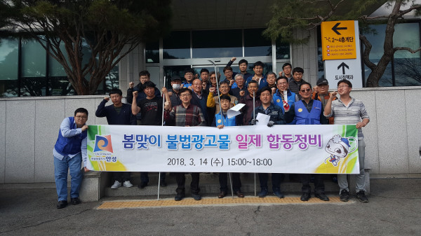 경기 안성시는 14일 개학기를 맞이해 각급 초·중·고등학교 주변과 주요도로변을 대상으로 깨끗한 거리환경 및 안전한 통학환경 조성을 위한 ‘개학기 학교주변 불법광고물 일제 합동정비’를 실시했다. 사진은 합동정비에 참여한 관계자들이 기념촬영을 하는 모습. (사진제공=안성시청)