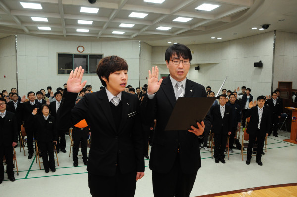 서울 동작소방서는 15일 대강당에서 성희롱 예방 특별 교육 및 청렴예방 선포식 행사를 개최했다. 사진은 소방서 직원들이 선서를 하고 있는 모습. (사진제공=동작소방서)