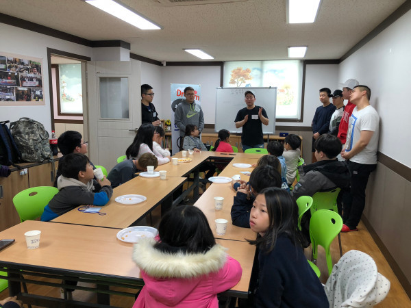 경기 동두천시 드림스타트는 지난 14일 영어회화 프로그램 ‘드림톡톡(Dream Talk Talk)’을 개강했다. 이 프로그램은 미군부대가 위치하고 있는 시 지역특수성을 활용한 프로그램이다. 사진은 관계자가 학생들에게 프로그램에 대해 설명하는 모습. (사진제공=동두천시청)