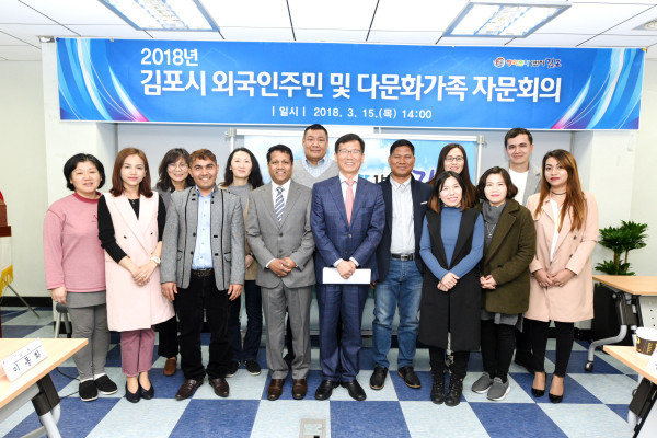 경기 김포시는 최근 시청 영상회의실에서 시 외국인 주민 및 다문화가족 자문회의를 개최했다. 자문회의는 시에 거주하는 외국인 주민·다문화가족의 다양한 의견을 듣고자 구성한 위원회다. 사진은 참여자들이 기념촬영을 하는 모습. (사진제공=김포시청)