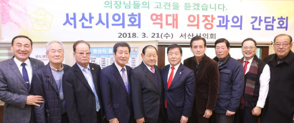 우종재 의장의 초청으로 이뤄진 이날 간담회는 박찬교 서산시·군 통합 초대 의장 등 약 10명이 참석했다.