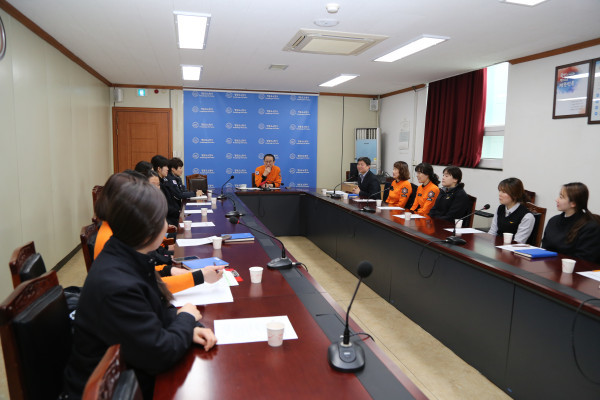서울 영등포소방서는 21일 오전 소회의실에서 여성 소방공무원의 고충 상담과 소통을 위한 간담회를 실시했다. 사진은 소방서장이 참여자들과 여성 소방공무원 고충상담관 제도 및 최근 사회적으로 이슈가 되고 있는 Me too 운동에 관한 내용 등에 토론하는 모습. (사진제공=영등포소방서)