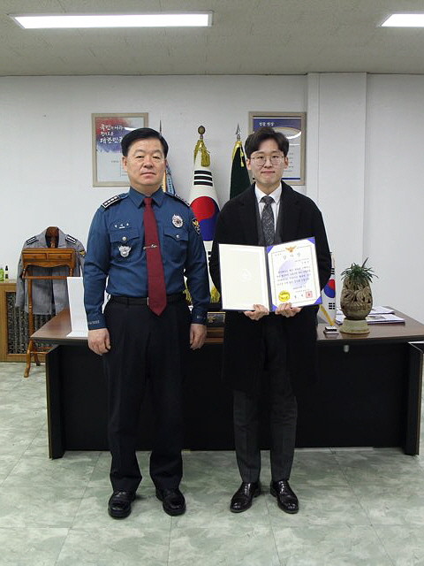 | ▲ 이태영 NH농협은행 계장(오른쪽)이 정지용 인천계양경찰서장으로부터 감사장을 수여 받은 후 기념촬영을 하고 있다.(사진제공=NH농협은행) | ||