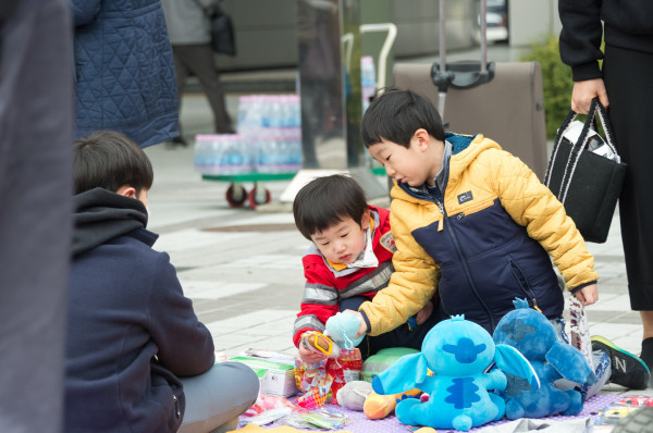 지난 24일 오전 양천구민체육센터 옆 광장에서 열린 '알뜰가정 벼룩시장'에서 아이들이 인형을 구경하고 있다. 2003년부터 운영을 시작한 ‘알뜰가정 벼룩시장’은 판매수익금의 10%를 자율적 기부하여, 나눔의 문화를 확산하는 데 일조하고 있다. (사진제공=양천구청)