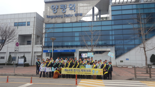 경기 양평군은 지난 23일 양평역과 양평5일장 일원에서 수원국유림관리소와 양평소방서 등 지역내 유관기관 및 단체 등이 참석한 가운데 ‘봄철 산불예방 캠페인’을 진행했다. 사진은 캠페인에 참석한 관계자들이 기념촬영을 하는 모습. (사진제공=양평군청)