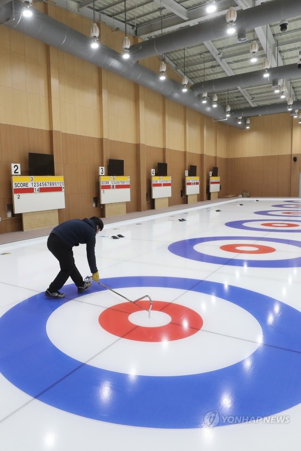 26일 경기도 의정부시 녹양동 의정부컬링경기장에서 개장식을 앞두고 시설 관계자들이 막바지 점검을 하고 있다. 의정부컬링경기장은 2007년 문을 연 경북 의성군에 이은 두번째 컬링 전용경기장이며 일반인도 이용할 수 있다.