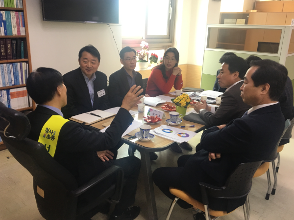 27일 서울 서초구가 지난 달 27일 선정된 유공납세자의 ‘일일 명예세무과장’ 체험행사를 진행했다, 이날 유공납세자는 세무3개 부서에서 담당하는 세금, 재산세, 취득세 등의 과세표준이 되는 개별주택가격 평가방법 등에 대해 각 과장들로부터 설명을 들었다. 사진은 일일명예세무과장이 된 유공납세자가 구정의 세무업무에 대해 설명을 듣고 있는 모습.(사진제공=서초구청)