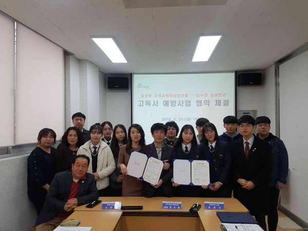 경기 동두천시 중앙동 지역사회보장협의체는 지난 23일 중앙동행정복지센터 2층 배움터에서 동두천 고교동아리 실버트리와 고독사 예방사업을 위한 업무협약을 체결했다. 사진은 관계자들이 기념촬영을 하고 있는 모습. (사진제공=동두천시청)