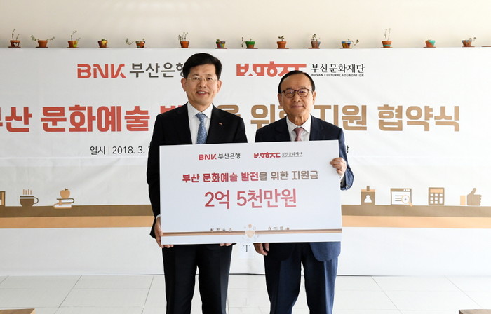 이번 협약을 통해 부산은행은 올해부터 2022년까지 5년간 매년 5000만원씩, 총 2억5000만원의 발전기금을 부산문화재단에 지원한다.