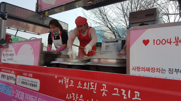 경기 양평군 양서봉사산악회는 지난 26일 지역내 저소득 취약계층 노인가구와 아동사회복지시설 신망원에서 집수리 봉사활동을 진행하고, 지역노인들을 대상으로 사랑의 짜장면을 대접했다. 사진은 대접할 짜장면을 만들고 있는 관계자의 모습. (사진제공=양평군청)