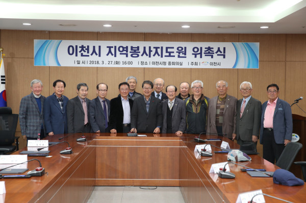 경기 이천시는 27일 시청 5층 중회의실에서 시장을 비롯한 대한노인회 이천시지회장, 14개 분회장 등이 참석한 가운데 '이천시 지역봉사지도원' 위촉식을 개최했다. 사진은 참여자들이 기념촬영을 하는 모습. (사진제공=이천시청)