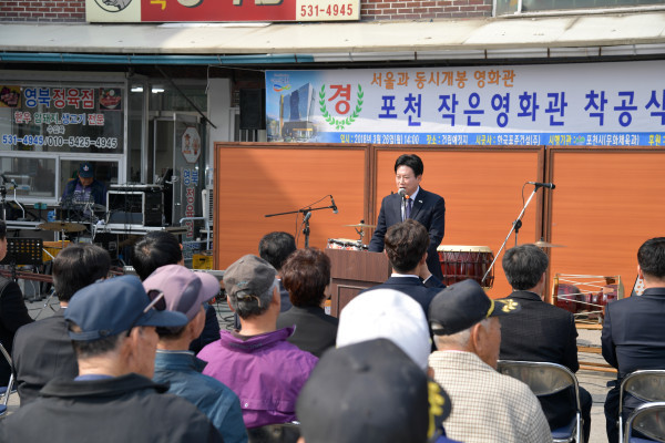 경기 포천시는 시민들의 문화 향유권 증진과 인근도시 원정 관람에 따른 시간과 비용을 줄여주고자 영북면 운천리 514-6번지 일원에 '작은영화관'을 착공하기로 하고, 지난 26일 착공식을 개최했다. 사진은 착공식이 진행 중인 모습. (사진제공=포천시청)