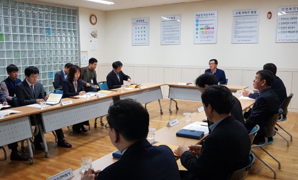 28일 김태정 경기 오산시부시장이 주민밀착형 공공시설에 대한 현장행정의 일환으로 오산시시설관리공단을 방문했다. 사진은 김 부시장 및 관계자들이 이야기를 나누는 모습. (사진제공=오산시청)
