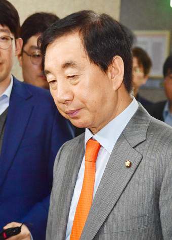 자유한국당 김성태 원내대표가 29일 국회 원내대표실을 나서며 세월호 관련 대변인 논평에 관한 취재진의 질문에 “한국당의 입장이 최종적으로 조율되지 못한 부분이 있었다. 공식논평이라고 확정 짓기는 어렵다”며 “어제 나간 대변인 논평의 상당한 내용을 수정해 다시 내도록 하겠다”고 발언하고 있다.