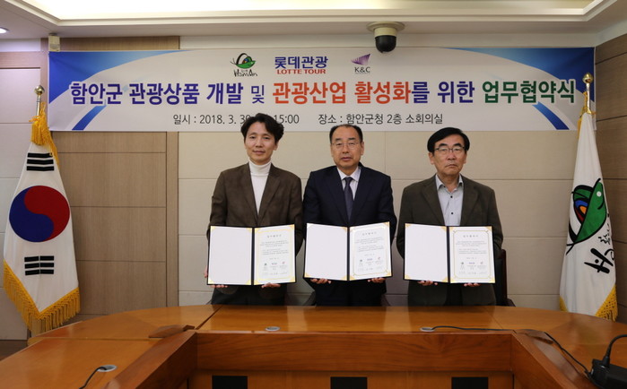 또한 롯데관광개발(주)는 함안의 다양한 관광자원을 활용한 관광상품 개발과 관광객 유치, 홍보마케팅 등을 추진하고, 경남관광박람회사무국은 함안 관광상품 개발과 관광산업 컨설팅을 해 나가기로 했다.