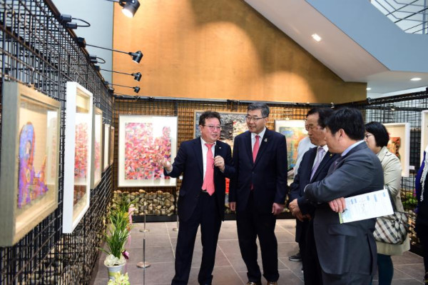 경기 여주박물관이 오는 5월31일까지 신관 여마관 1층 로비 전시홀에서 ‘옛 그림 속으로’란 주제로 홍성훈 작가 초대전을 진행한다. 사진은 지난 3일 개막식에 참석한 여주시 관계자들이 홍 작가의 작품을 둘러보고 있는 모습. (사진제공=여주시청)