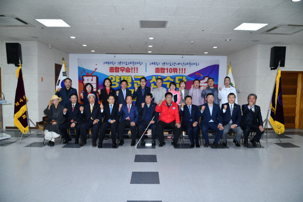 지난 3일 경기 양평군체육회와 양평군장애인체육회가 군청 대회의실에서 종목별 선수, 임원, 체육회 이사 등 약 250명과 함께 ‘제64회 경기도체육대회’ 및 ‘제8회 경기도장애인체육대회 양평군 선수단 결단식’을 개최했다. 사진은 참가자들이 기념촬영을 하는 모습. (사진제공=양평군청)