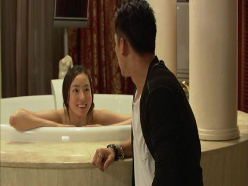 특히 그녀는 슈퍼모델 출신다운 매끈한 다리와 어깨라인으로 섹시함뿐 아니라 우아하기까지 한 목욕신을 완성시켰다.