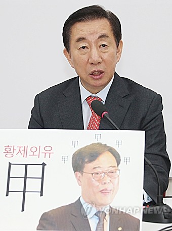 자유한국당 김성태 원내대표가 8일 국회에서 ‘김기식 금감원장의 `피감기관 돈 외유’를 ‘`황제외유’라고 비판하고 있다.