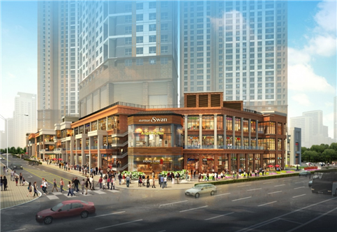 단지 내에 들어서는 프리미엄 상업시설인 ‘애비뉴스완’은 Park Terrace, Park Square, River Park 등 감각적 구역특화와 클래식과 모던을 오가는 뉴욕 스타일 스트리트몰을 재현했으며, 건물 외관 전체를 적벽돌과 라임스톤 등 고급 자재로 마감해 품격 있는 분위기를 연출했다.