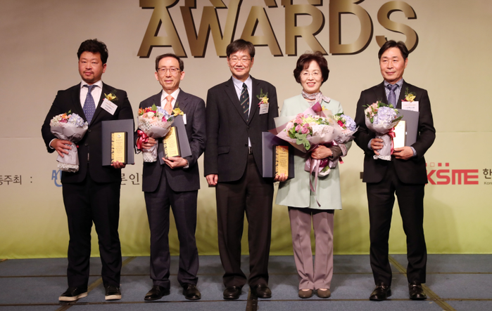 사진은 수상 후 기념 촬영을 하고 있는 송파구청장(오른쪽 두번쨰)와 수상자들의 모습.(사진제공=송파구청)