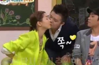 과거 두 사람은 '세바퀴'에 함께 출연, 방송중 실제 볼 뽀뽀를 하는 모습으로 모두를 놀라게 한 바 있다.