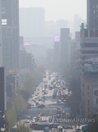 중국발 미세먼지와 황사로 서울 대부분 지역의 미세먼지 농도가 ‘나쁨’ 수준을 보인 11일 서울 종로 도심이 온통 희뿌옇게 보이고 있다.
