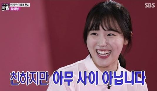 김아랑은 "윤기 오빠가 '아랑아! 어디 나가면 오빠 이야기 꼭 하라'고 했다"면서도 "친하지만 아무 사이 아닙니다"라고 열애설을 부인했다.