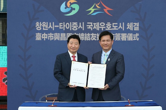 창원시는 11일 창원마산야구장에서 안상수 창원시장, 린자룽(林佳龍) 타이중시장, 황순현 NC 다이노스 대표 및 양 도시 관계자 및 시민 등이 참석한 가운데 타이중시와 국제우호도시 교류협정을 체결했다고 밝혔다.
