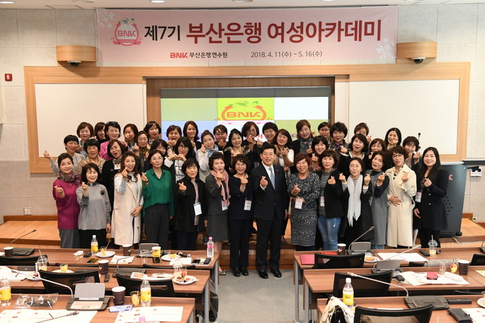 ‘부산은행 여성아카데미’는 부산은행 각 영업점에서 추천한 여성고객을 대상으로 진행하는 교양프로그램으로 2012년부터 진행되어 총 6회에 걸쳐 300여명의 졸업생을 배출했다.