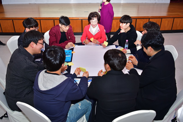 송파구는 최근 송파의 발전 방향과 새로운 미래를 준비하기 위한 집담회 '송파, 남성에게 길을 묻다'를 통해 총 185건의 의견을 수렴했다. 사진은 구청장과 참여자들이 의견을 나누는 모습. (사진제공=송파구청)