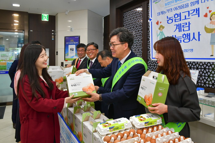 이대훈 NH농협은행장은 “이번 행사는 최근 계란 가격 폭락으로 양계농가가 심각한 경영 악화를 겪고 있어 양계농가의 어려움을 함께 나누기 위해 마련했다”고 말했다.