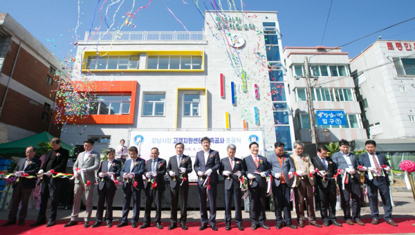 11일 인천 서구가 지면적 159.1㎡에 지상 4층, 연면적 291.46㎡ 규모로 건립된 '강남시장 고객지원센터' 신축공사 완공에 따른 준공식을 개최했다. 사진은 준공식 참여자들이 리본 커팅식을 진행하고 있는 모습. (사진제공=인천 서구청)
