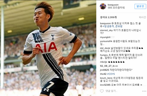 챔피언스리그가 관심을 모으면서 배성재 SBS 아나운서의 SNS가 눈길을 끈다. 배성재 아나는 과거 자신의 SNS에 "토트넘 이적 후 챔스 첫 골 #밤샘중계_큰보람"이라는 글과 함께 손흥민의 사진을 공개했다.