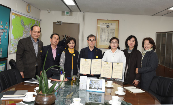 | ▲ 노원구와 산림치유사회적협동조합 관계자들이 협약을 체결한 후 협약서를 들고 기념촬영을 하는 모습. (사진제공=노원구청) | ||