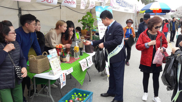 경기 여주시는 지난 13일 ‘제265차 안전점검의 날’을 맞이해 지역자율방재단과 안전지킴이 봉사단 등이 참석한 가운데 ‘제2회 여주흥천남한강 벚꽃축제’ 행사장에서 안전점검의 날 캠페인을 개최했다. 사진은 행사 부스를 방문해 캠페인을 진행하고 있는 봉사자의 모습. (사진제공=여주시청)