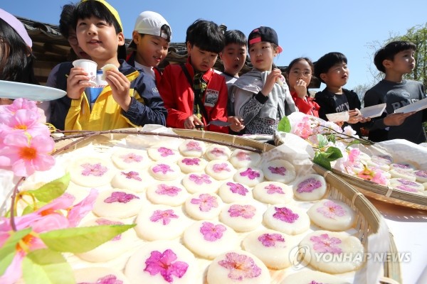 강남갔던 제비가 돌아온다는 음력 '삼짇날'을 맞이해 18일 오전 서울 종로구 국립민속박물관에서 열린 민속체험 행사에서 어린이들이 봄을 만끽할 수 있는 화전 만들기를 하고 있다.