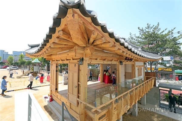18일 오전 서울 종로구 재동초등학교에서 열린 '취운정(翠雲亭)' 개관식에서 학생들이 취운정 내부를 둘러보고 있다.