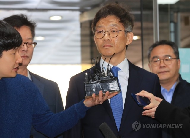 후배 여검사를 성추행하고 인사보복을 했다는 의혹을 받는 안태근 전 검사장이 18일 오전 서울 서초구 서울중앙지법에서 '구속 전 피의자 심문'(영장실질심사)에 출석하기 위해 법정으로 향하고 있다.