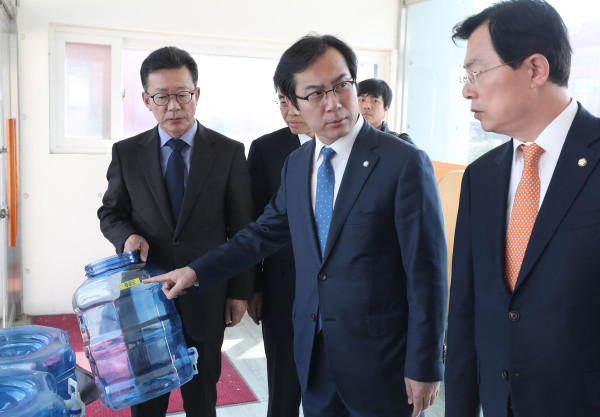 | ▲ 17일 오후 자유한국당 댓글조작진상조사단이 문재인 정부 비방 댓글과 추천 수 조작 혐의로 구속된 '드루킹' 김 모씨가 공동대표로 있는 경기 파주시 느릅나무 출판사를 방문, '경공모'라고 붙여진 물통을 가리키고 있다.(사진제공=연합뉴스) | ||