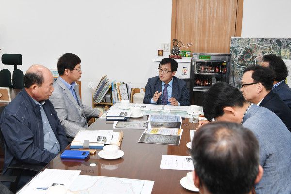 경기 오산시는 지난 18일 부시장 및 관련부서 공무원, 아파트연합회장, 생활폐기물대행업체 관계자 등이 참석한 가운데 ‘폐플라스틱 수거처리와 관련 간담회’를 개최했다. 사진은 간담회에 참석한 관계자들이 의견을 나누고 있는 모습.(사진제공=오산시청)
