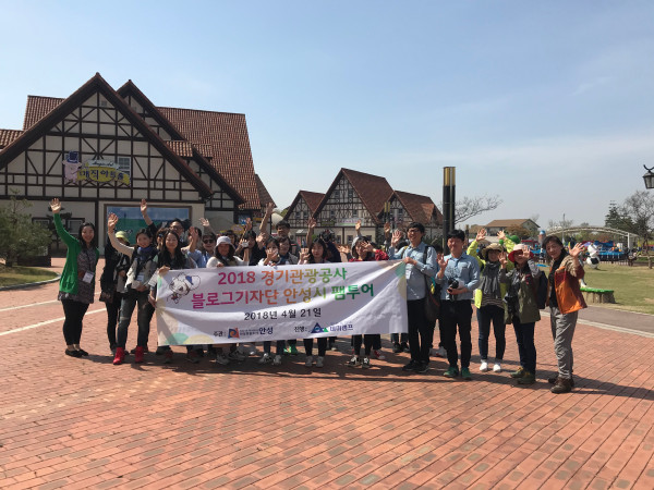 경기 안성시는 지난 21일 블로그 기자단인 ‘끼투어 기자단’을 대상으로 안성팜랜드와 안성맞춤박물관, 남사당공연장 등의 지역내 문화·역사·자연과 연계한 곳을 방문하는 ‘팸투어 행사’를 개최했다. 사진은 팸투어에 참여한 참가자들이 기념촬영을 하는 모습. (사진제공=안성시청)