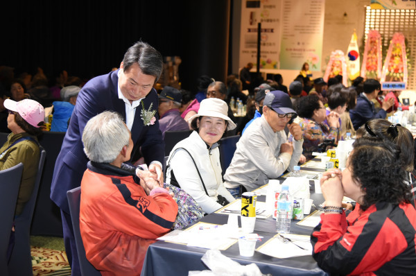중랑구는 24일 웨딩그룹 위더스중랑에서 제38회 장애인의 날 기념해 ‘장애인 한마음 대축제’를 개최했다. 이날 행사에는 지역내 장애인과 가족 및 장애인단체, 자원봉사자 등 1000여명이 참여했다. 사진은 구청장이 참여자들과 이야기를 나누는 모습. (사진제공=중랑구청)