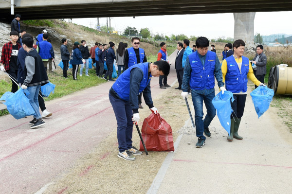 경기도자동차전문정비사업조합 광주시지회는 지난 22일 경안천 주변 일대에서 지회 회원 및 가족, 광주시청 교통정책과 직원 등이 참석한 가운데 ‘봄맞이 하천 환경정화 활동’을 진행했다. 사진은 하천정화활동에 참여한 관계자들이 쓰레기를 줍고 있는 모습. (사진제공=광주시청)