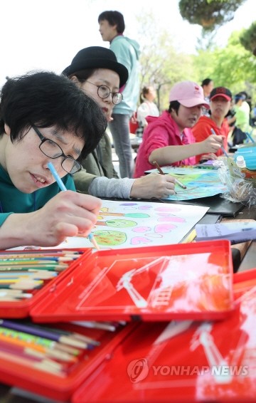 25일 오후 서울 종로구 국립민속박물관에서 열린 제32회 서울발달장애인 사생대회에서 참가자들이 그림을 그리고 있다.