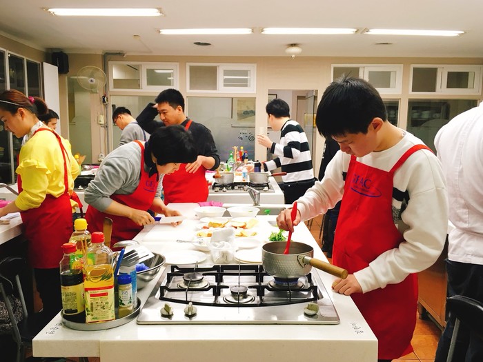 | ▲ ‘글로벌푸드아트수도직업전문학교(GFAC)’에서 실습이 진행 중인 모습.(사진제공=제너시스BBQ) | ||