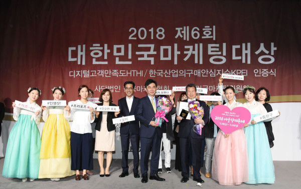 중랑구 ‘서울장미축제’가 25일 여의도 전경련플라자 그랜드볼륨에서 개최된 제6회 대한민국 브랜드대상 시상식에서 ‘2018 소비자평가 브랜드 대상’을 받았다. 사진은 구청장 및 관계자들이 기념촬영을 하는 모습. (사진제공=중랑구청)